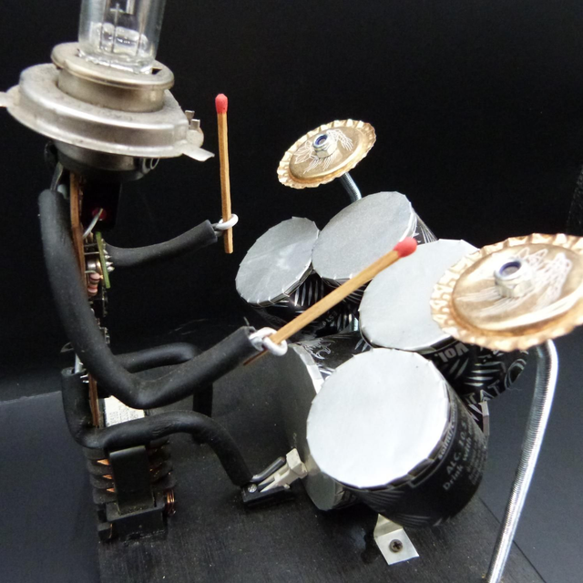 Le batteur est une figurine réalisée avec des objets de récupération upcyclés ♻️.