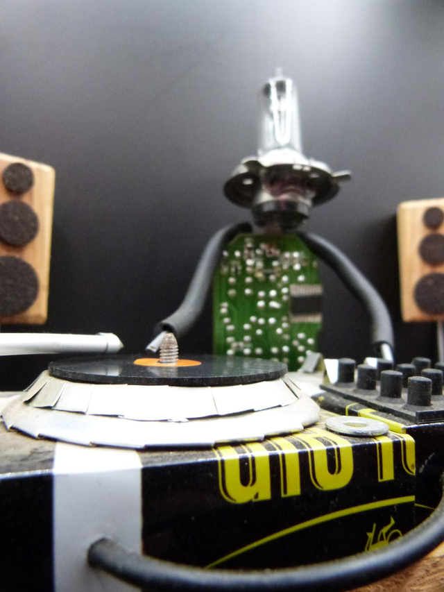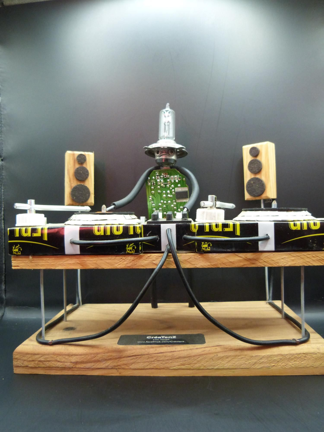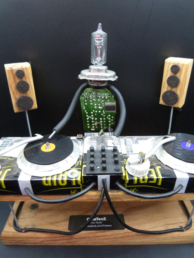 Le dj est une figurine réalisée avec des objets de récupération upcyclés ♻️.