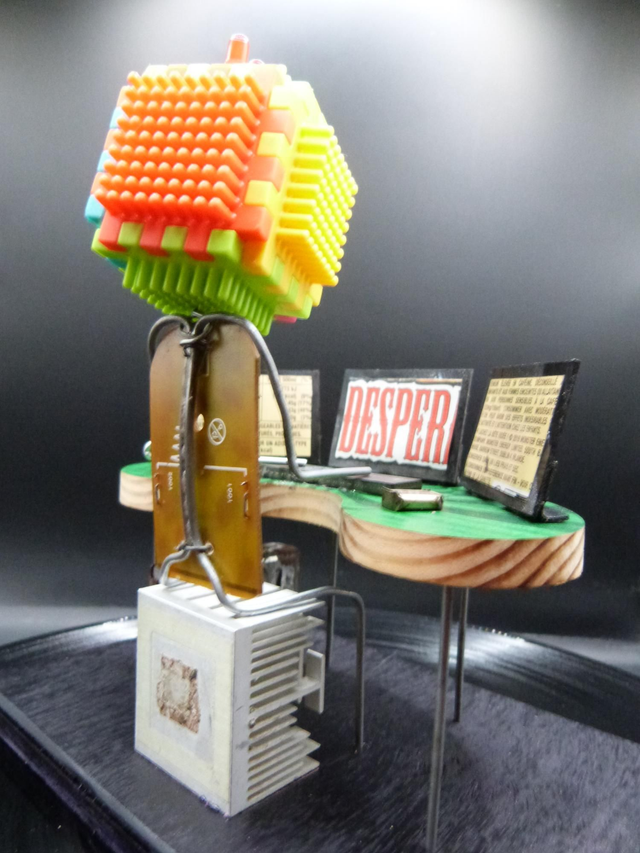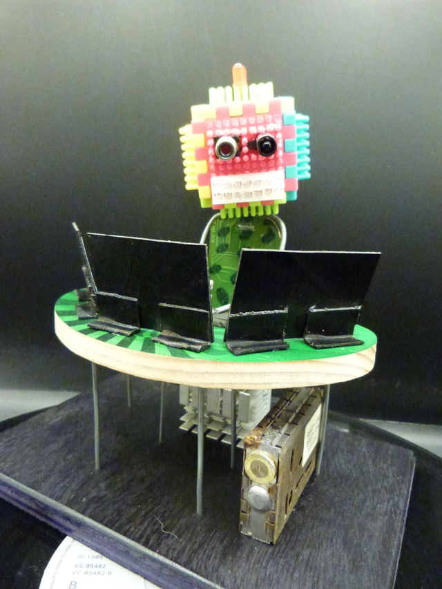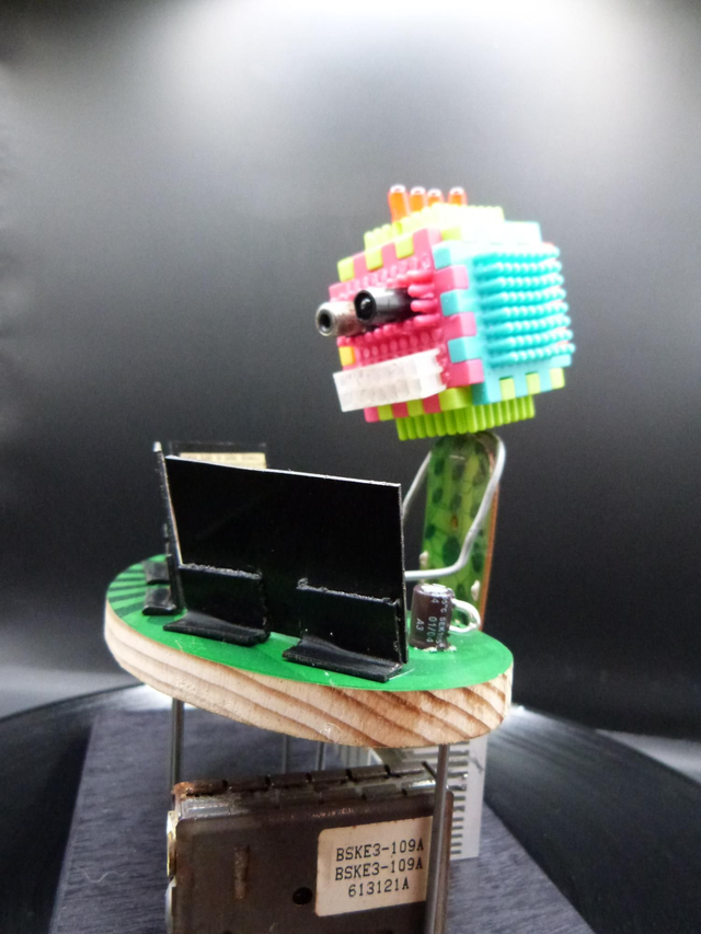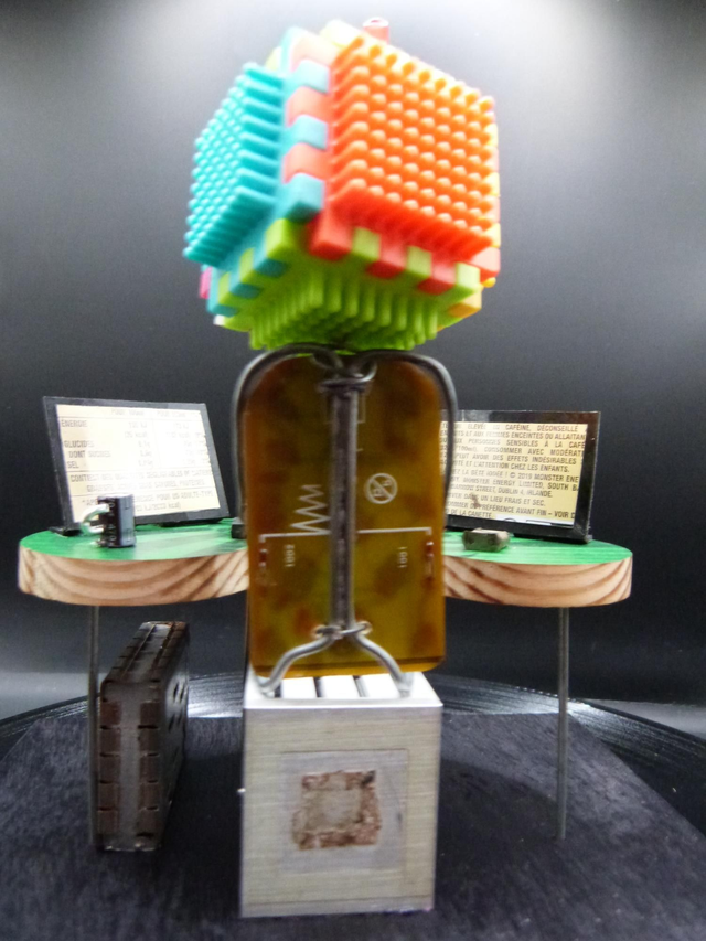 Pixelus L'antivirus est une figurine réalisée avec des objets de récupération upcyclés ♻️.