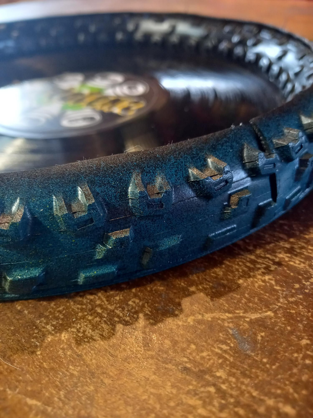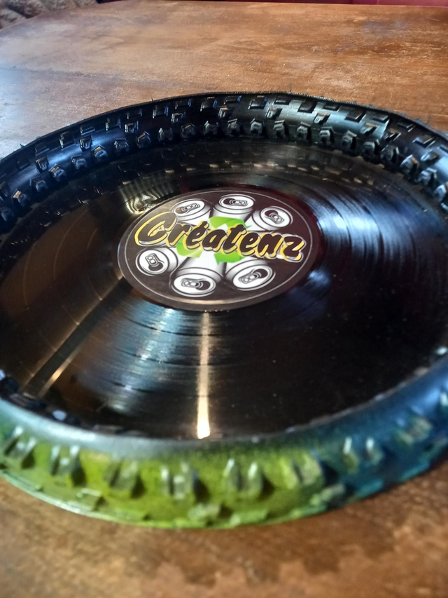 C'est un plateau de dés réalisé avec un disque vinyle 33 tours et du pneu de velo pour faire le contour.